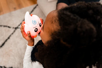 Lorsque l’enfant se sent en colère, il peut allumer Calmy, sa flamme devient alors rouge, reflétant l’intensité de la colère. L’enfant est alors invité à souffler doucement dessus… et à mesure que le souffle se calme, la couleur s’éclaircit le guidant visuellement vers l’apaisement. C’est un outil pédagogique et sensoriel conçu pour accompagner les enfants dans l’apprentissage de la gestion émotionnelle.