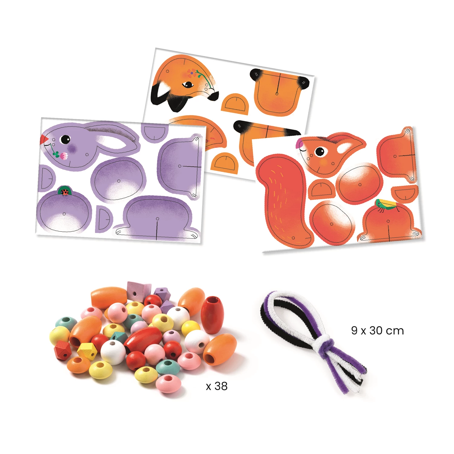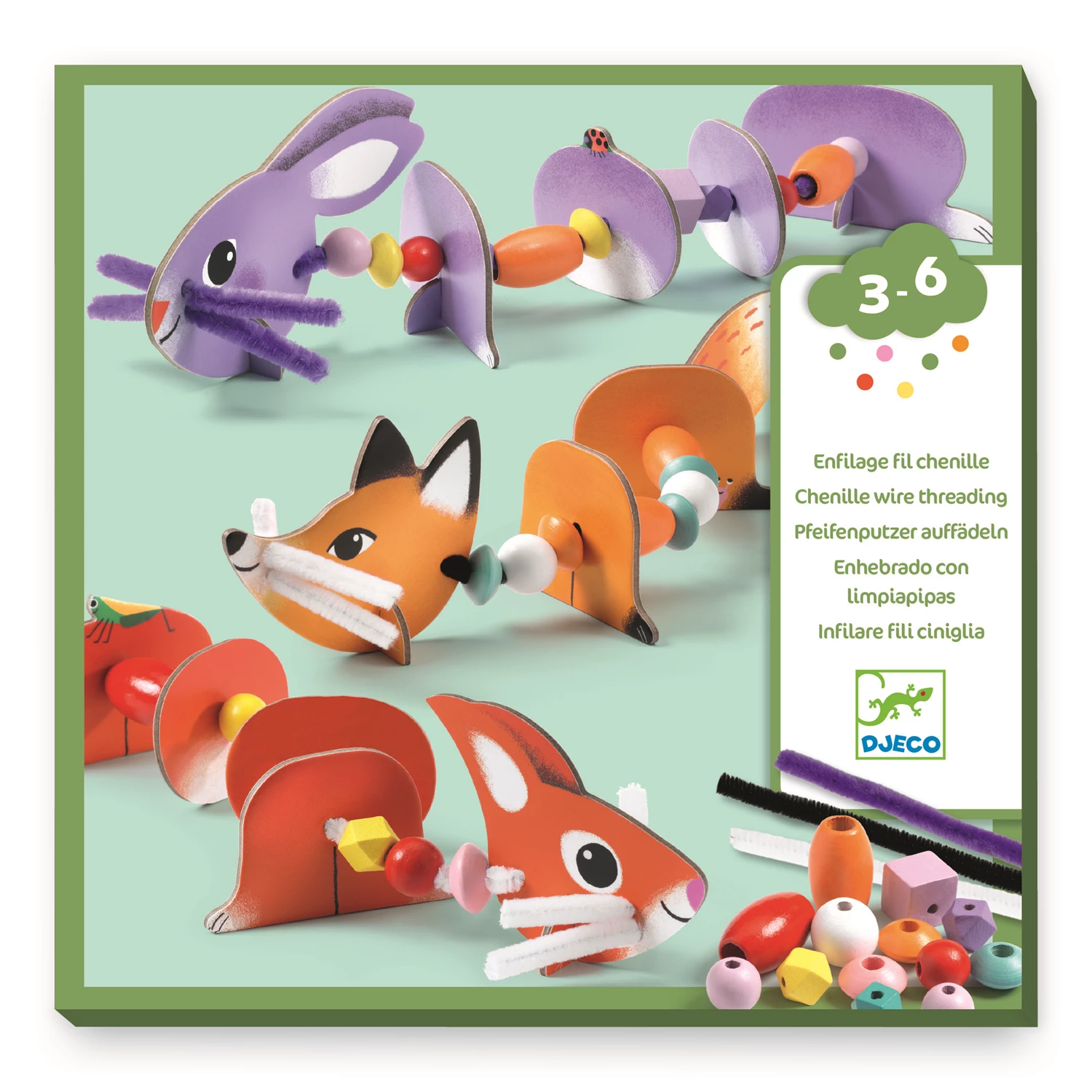 Une activité originale qui permet à l’enfant de créer 3 adorables animaux mignons avec du fil chenille, des perles de bois et des éléments prédécoupés en carton épais.