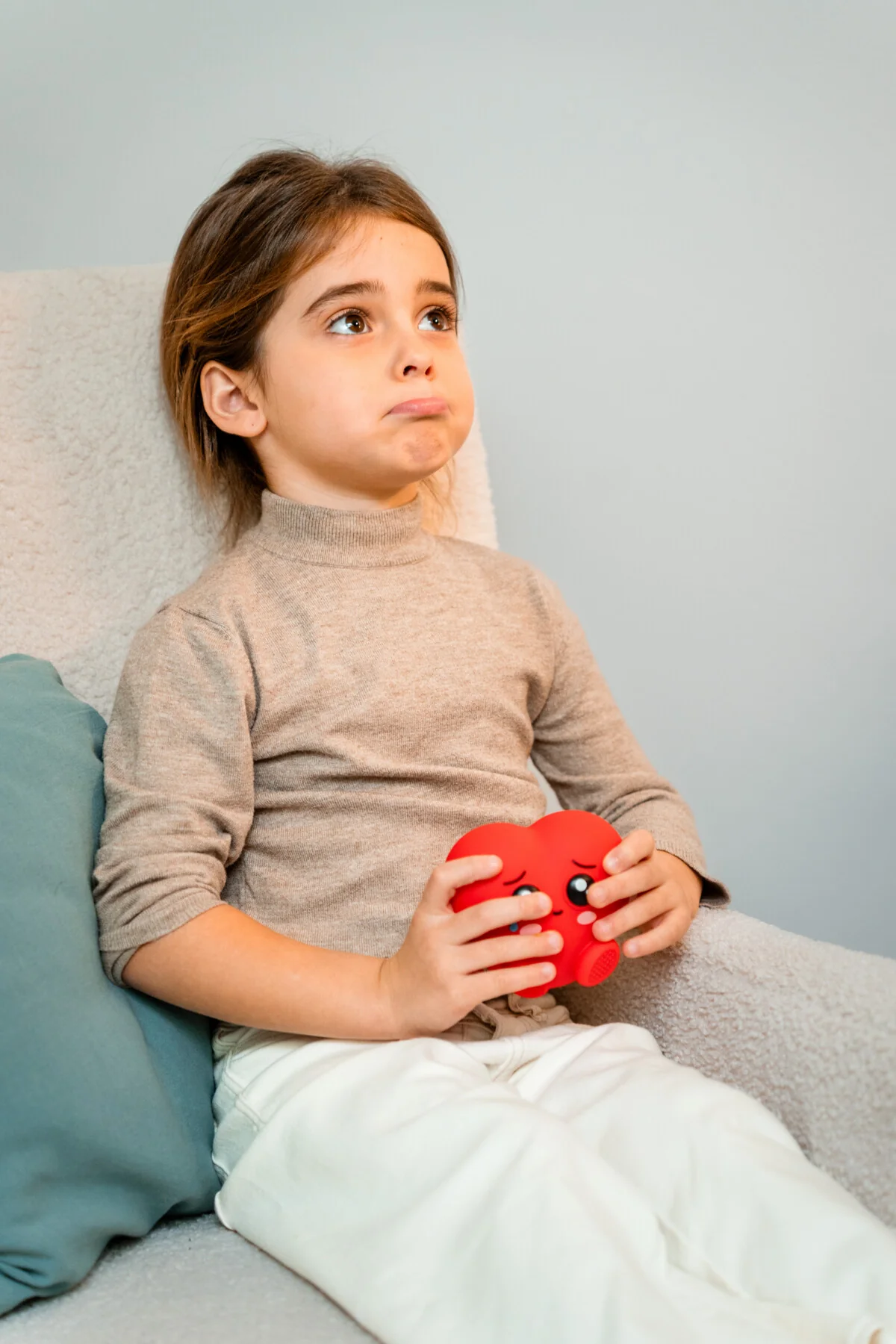 Huggy est bien plus qu’un simple personnage réconfortant : c’est un outil d’aide émotionnelle conçu pour accompagner les enfants dans la gestion de leur tristesse. Le rythme rassurant des battements du coeur agit comme un repère, aidant à calmer les émotions fortes, réguler la respiration et favoriser le retour au calme.