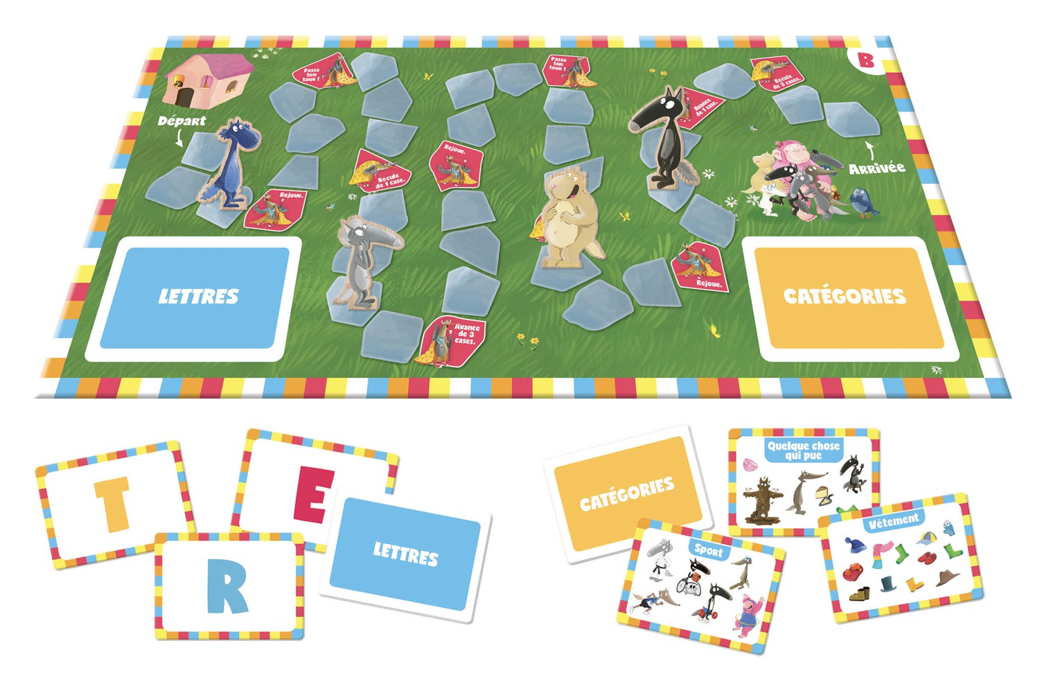 Grâce au plateau recto/verso, les enfants lecteurs ou non lecteurs peuvent jouer ! EN incarnant Loup et ses amis, les joueurs vont s’affronter pour avancer le plus vite possible sur le plateau.