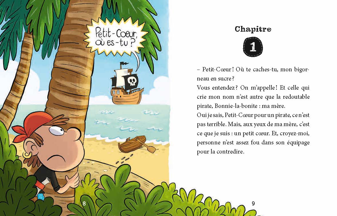 Vous entendez ? C’est la redoutable pirate, Bonnie-la-bonite : ma mère. J’en ai assez d’être un “petit coeur” à ses yeux. Je veux prouver que je suis un vrai pirate, moi aussi. Et pour cela, je dois trouver un trésor ! Tu m’aides à le chercher ?
