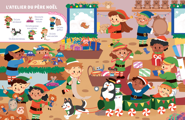 Accompagne les malicieux lutins dans leurs préparatifs et découvre leur quotidien féerique à travers des décors enchanteurs comme l’atelier du père Noël, la patinoire, la colline enneigée, et d’autres encore !