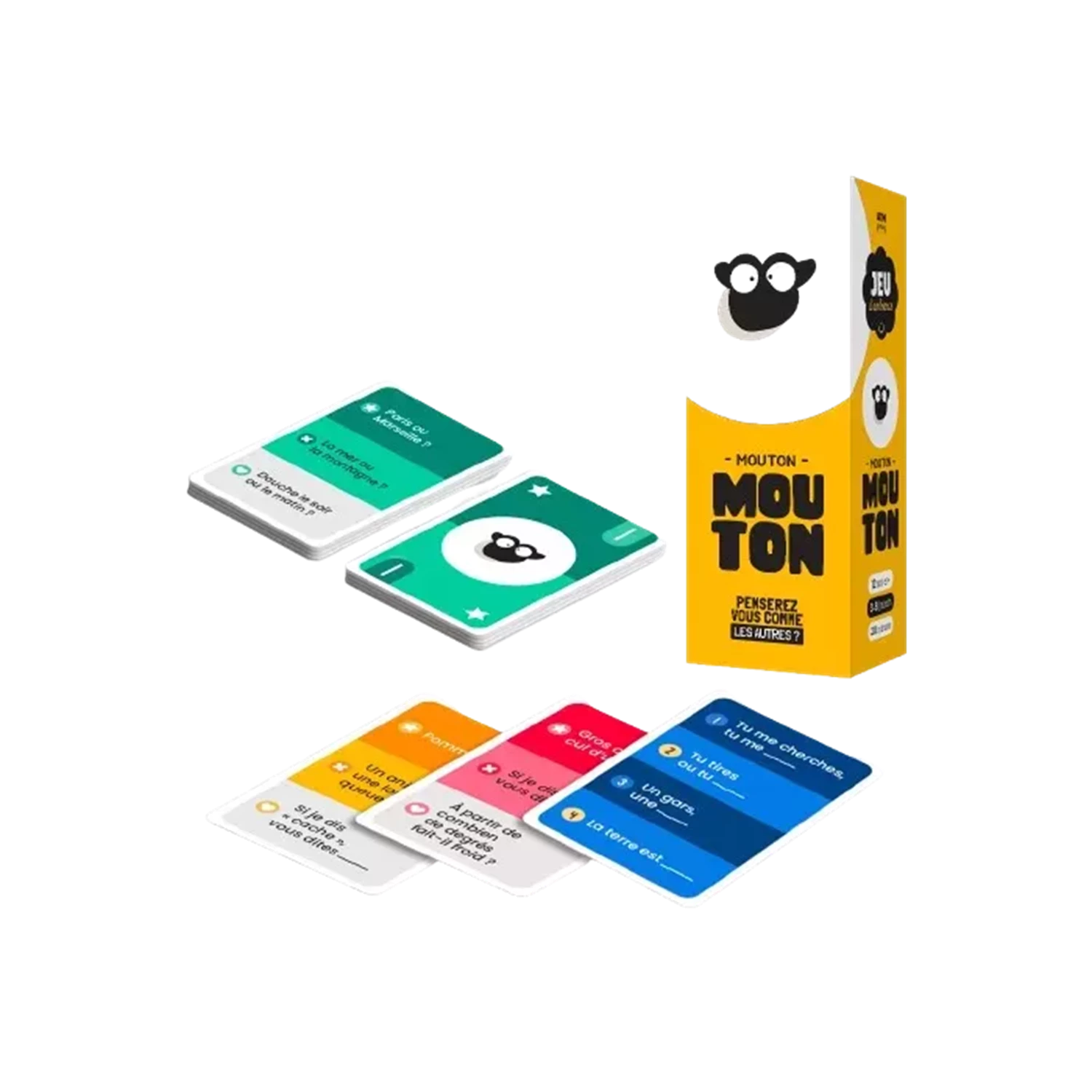 “Mouton Mouton, c’est le jeu qui va mettre votre complicité à rude épreuve ! Complétez les phrases en même temps que votre partenaire : si vos réponses sont identiques, vous remportez la carte ! Enchaînez les bonnes réponses pour faire grimper votre score… mais attention : une seule erreur, et tout peut s’écrouler !”