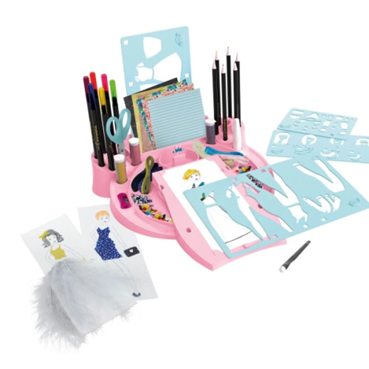 Choisis une silhouette, dessine les tenues avec les pochoirs et donne leur du volume grâce aux nombreux accessoires inclus : tissu adhésif, plumes, paillettes, feutrine, rubans, feutres, crayons de couleurs aquarellables, ciseaux, taille-crayon… Inspire-toi du portfolio pour créer tes propres tendances ! Notice illustrée en couleurs