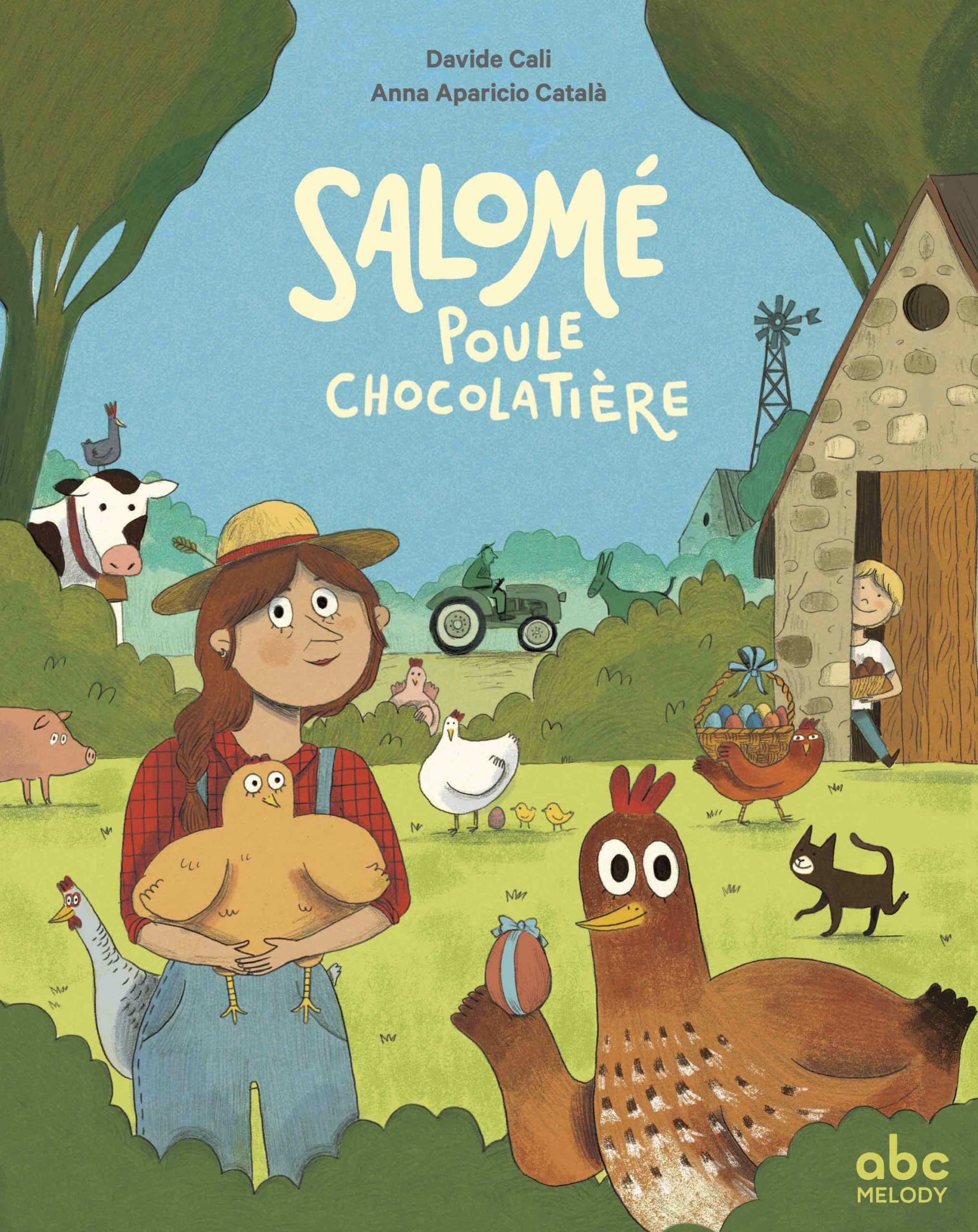 Célestine a sept poules qui picorent joyeusement en plein air. Brigitte pond des œufs blancs; Agathe, des roses; Bernadette, des œufs tachetés; Capucine, des minuscules; Odette des œufs énormes.; ceux de Charlotte ont deux jaunes d’œuf. Salomé, elle, n’a toujours rien pondu… Un matin, le petit Arthur, qui passe les vacances de Pâques chez sa tante, trouve un drôle d’œuf sous les plumes de Salomé. Un œuf marron ! Célestine, la fermière en reste bouche-bée : sa poulette pond des œufs en chocolat… et elle en pond des dizaines ! La nouvelle fait vite le tour du village, puisse répand dans tout le pays, jusqu’au journal télévisé. Dans l’industrie du chocolat, on commence sérieusement à s’inquiéter : les fêtes de Pâques approchent et cette drôle de poule menace les affaires des chocolatiers…